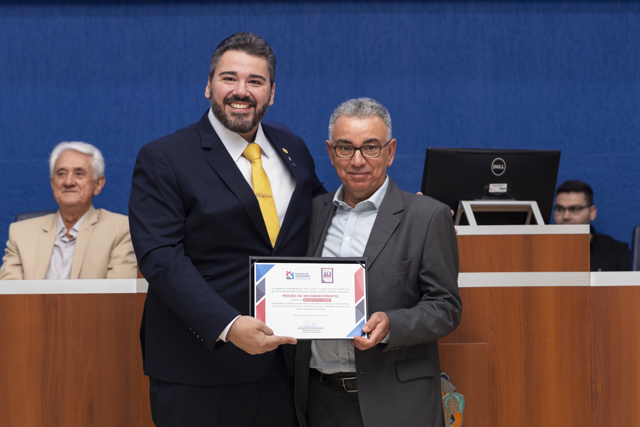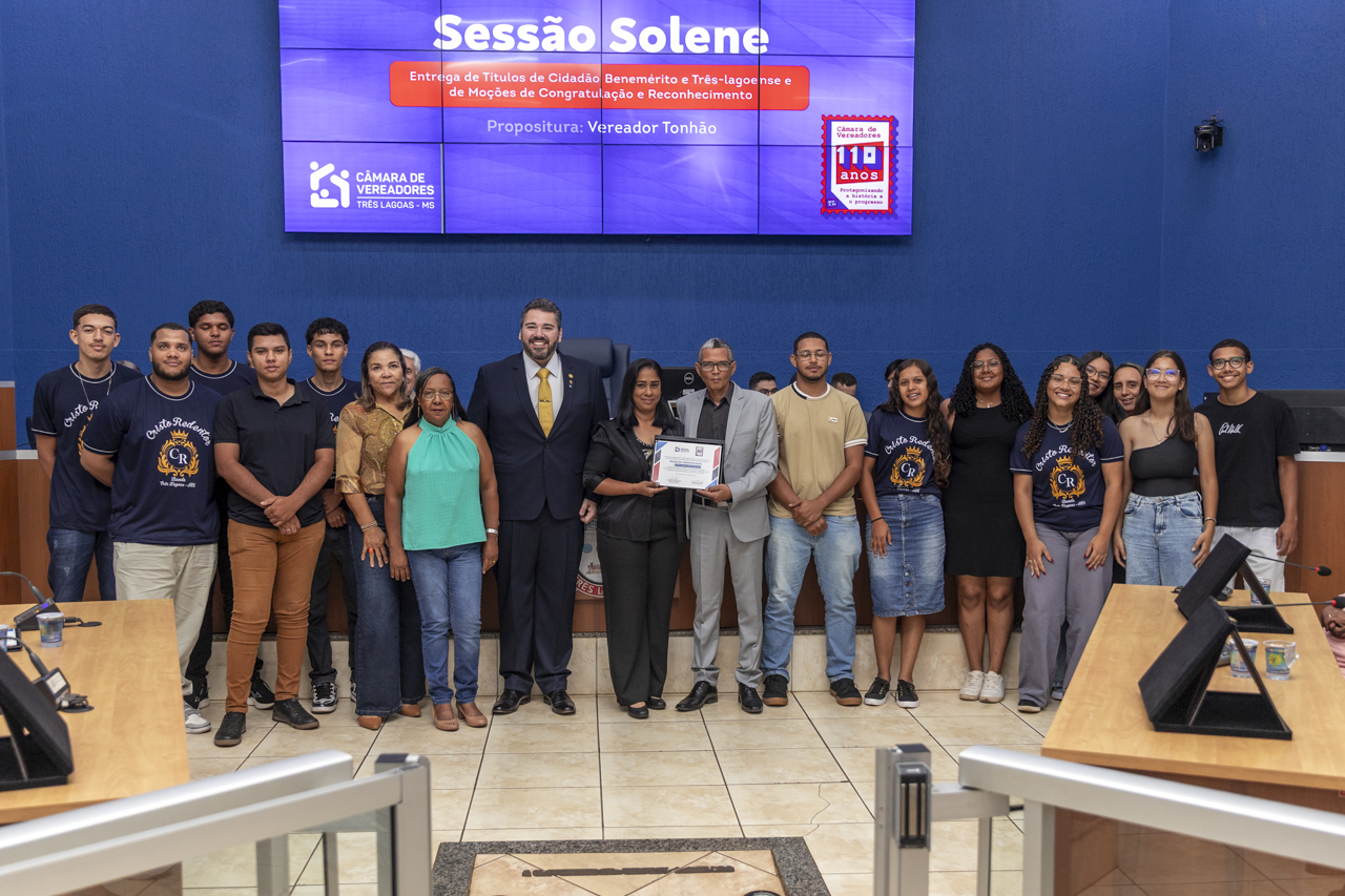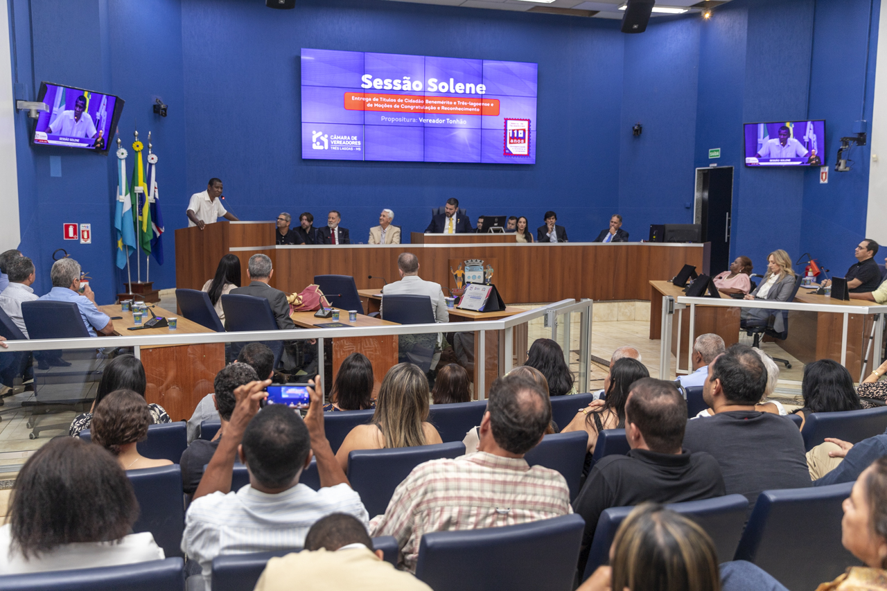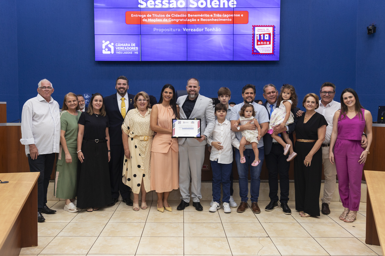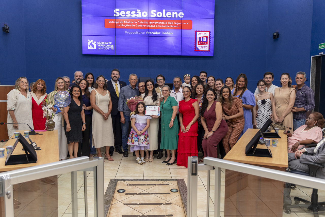 Em sessão solene realizada na noite desta quarta-feira (17), a Câmara de Vereadores de Três Lagoas outorgou títulos e honrarias de reconhecimento e congratulação a personalidades e instituições que atuam em prol do município em diferentes setores.